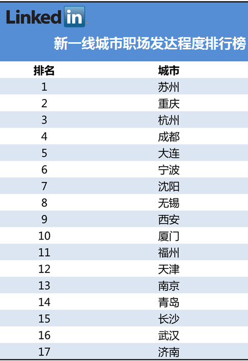 新一線城市職場(chǎng)最發(fā)達(dá)城市:蘇州、重慶、杭州、成都